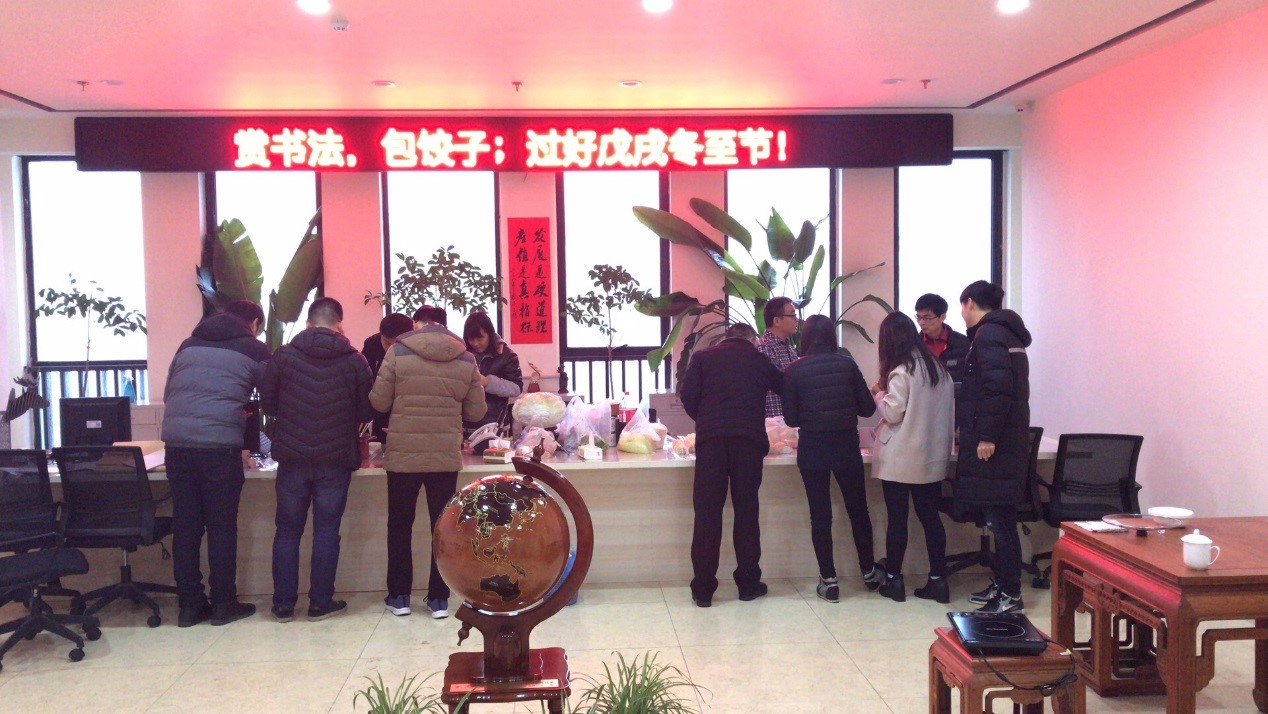 冬至是中国的重要节气,俗语说的好,“冬至不端饺子碗,冻掉耳朵没人管”,所以包饺子活动是必不可少的。公司准备好了饺子的所有材料,有韭菜肉馅,白菜肉馅等等,可以满足员工的不同口味。