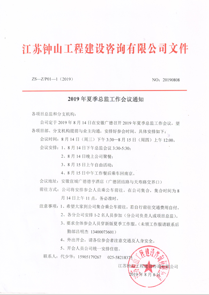 2019年夏季总监工作会议通知