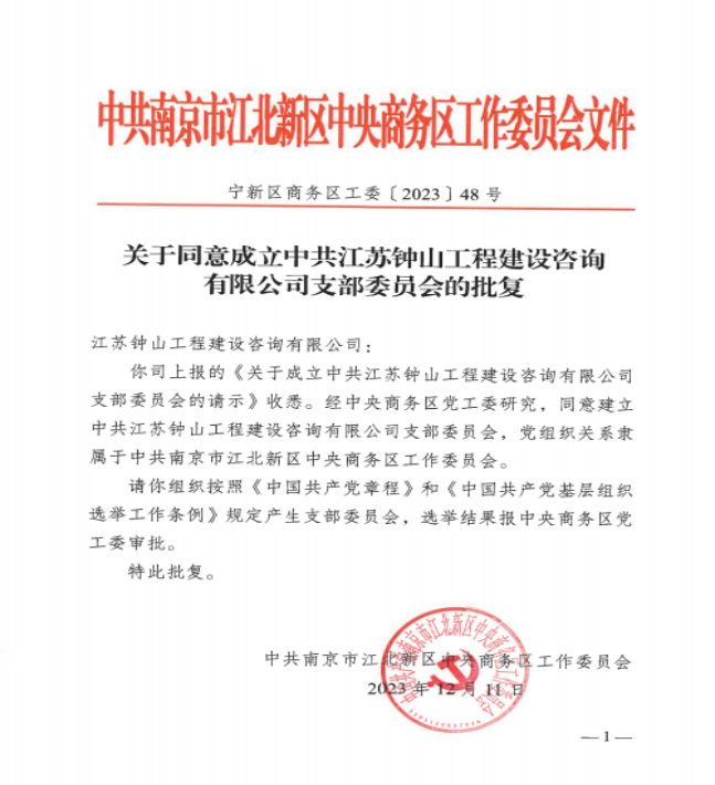 为加强企业基层党组织建设,发挥党组织战斗堡垒和共产党员的先锋模范作用,经过公司的筹备、申请,2023年12月11日,中共南京市江北新区中央商务区委员会同意批复mk中国官网支部委员会成立。